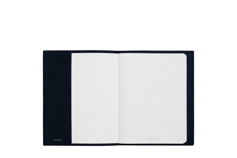 Deze beschermhoes voor notitieblokken in A5-formaat (van ongeveer 50 pagina's) is vervaardigd uit authentiek premium leer en is zowel verfraaiend als duurzaam. Verfraaiend, omdat het uw simpele schrift omvormt tot een veel chiquer product. Duurzaam, omdat het vakkundig ontworpen werd door de allerbeste leder-ambachtslieden van Lucrin. Het schrijfboek wordt goed op zijn plaats gehouden door twee leren banden aan elke kant, waarin u de harde kaft van uw notitieboek kan schuiven.