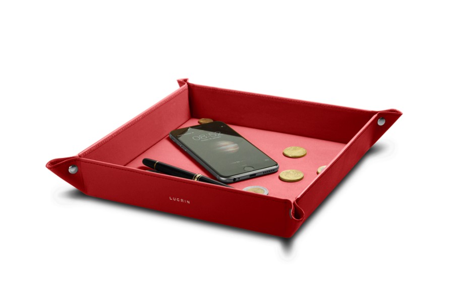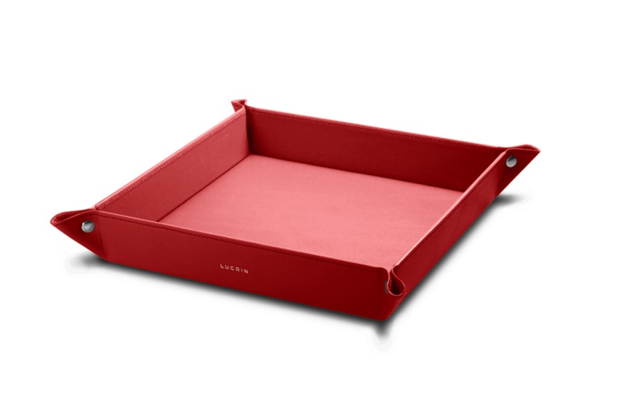 Grote vierkante opruimbak (21 x 21 x 4 cm) - Rood - Soepel Leer