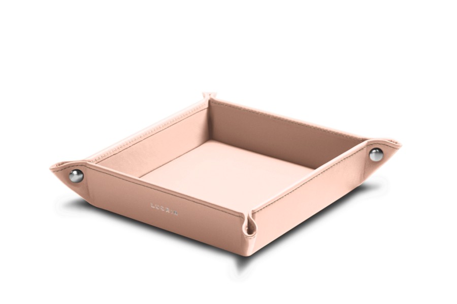 Dit is het kleine, stevige rommelbakje uit de Lucrin collectie, volledig vervaardigd uit natuurlijk leer. Zijn onberispelijke afwerkingen maken het een decoratief voorwerp dat verfijnd is maar toch uiterst handig. U kan dit vierkante opruimbakje plaatsen waar u maar wil, thuis of op kantoor, om uw spullen te organiseren en de items die u in uw zakken bewaart bij te houden. De hoeken worden samengehouden door 4 metalen klinknagels.