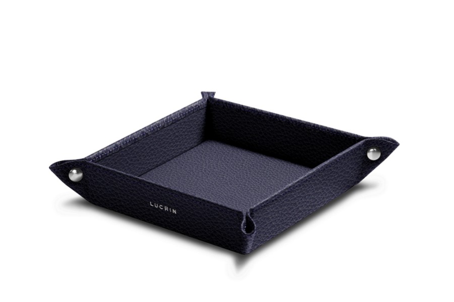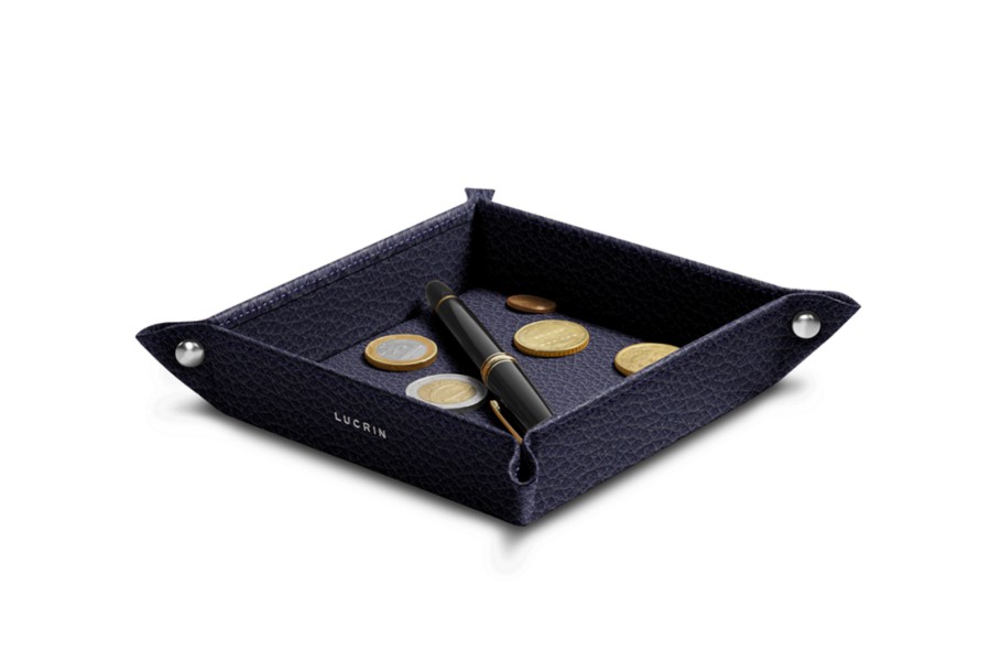 Dit is het kleine, stevige rommelbakje uit de Lucrin collectie, volledig vervaardigd uit natuurlijk leer. Zijn onberispelijke afwerkingen maken het een decoratief voorwerp dat verfijnd is maar toch uiterst handig. U kan dit vierkante opruimbakje plaatsen waar u maar wil, thuis of op kantoor, om uw spullen te organiseren en de items die u in uw zakken bewaart bij te houden. De hoeken worden samengehouden door 4 metalen klinknagels.