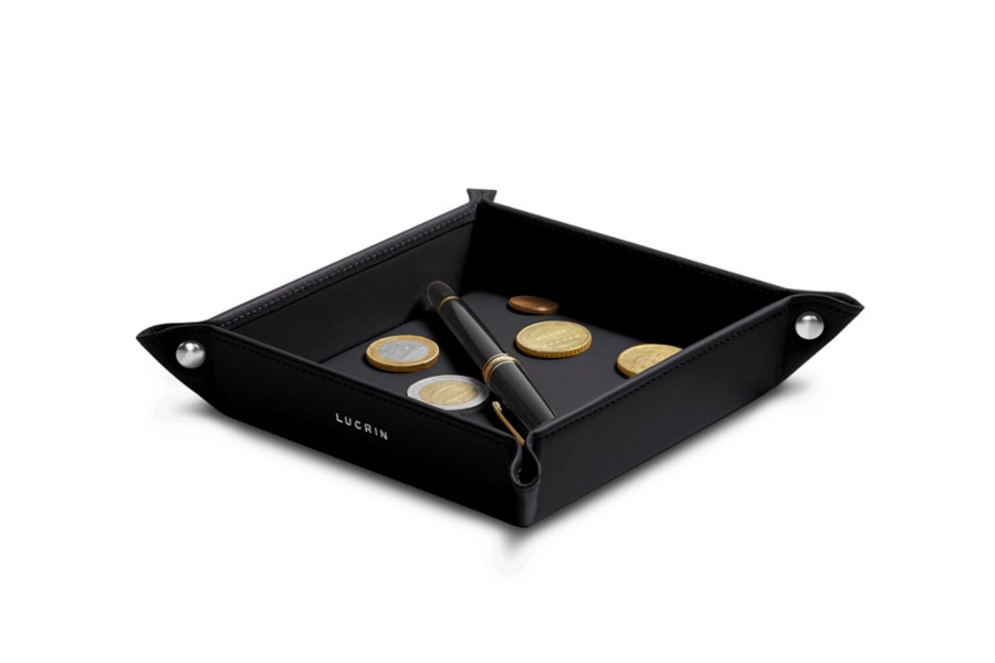 Dit is het kleine, stevige rommelbakje uit de Lucrin collectie, volledig vervaardigd uit natuurlijk leer. Zijn onberispelijke afwerkingen maken het een decoratief voorwerp dat verfijnd is maar toch uiterst handig. U kan dit vierkante opruimbakje plaatsen waar u maar wil, thuis of op kantoor, om uw spullen te organiseren en de items die u in uw zakken bewaart bij te houden. De hoeken worden samengehouden door 4 metalen klinknagels.