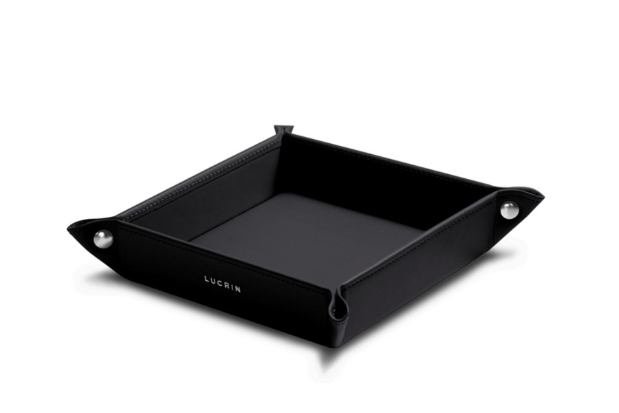 Klein vierkant opruimbakje (12 x 12 x 3 cm) - Zwart - Soepel Leer