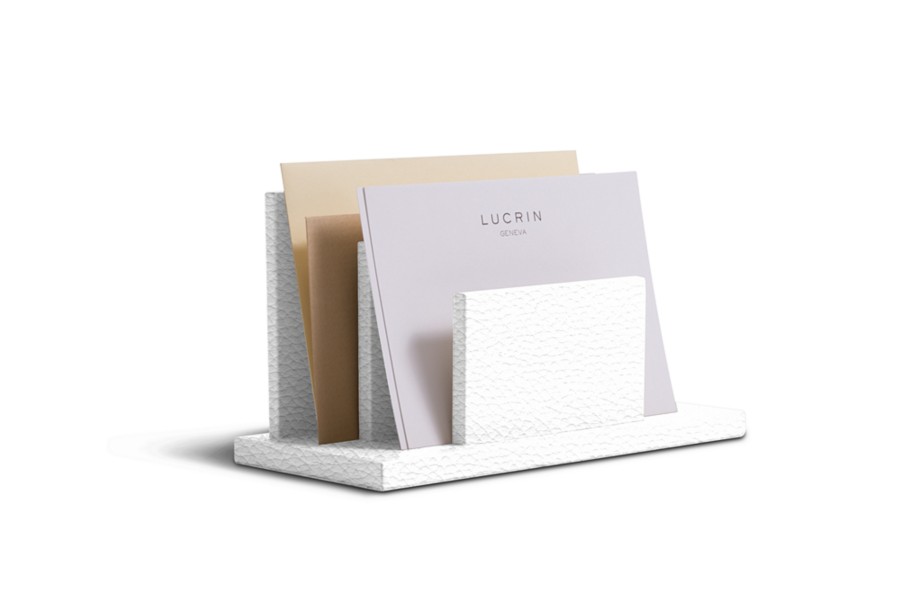 De verschillende aanpassingsopties die bij Lucrin beschikbaar zijn voor dit brievenbakje, bieden u een uniek en elegant kantooraccessoire van echt leer.