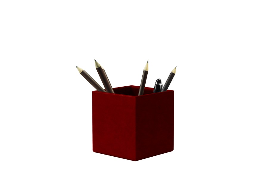Vierkante penhouder - Karmijnrood - Plantaardig gelooid leer
