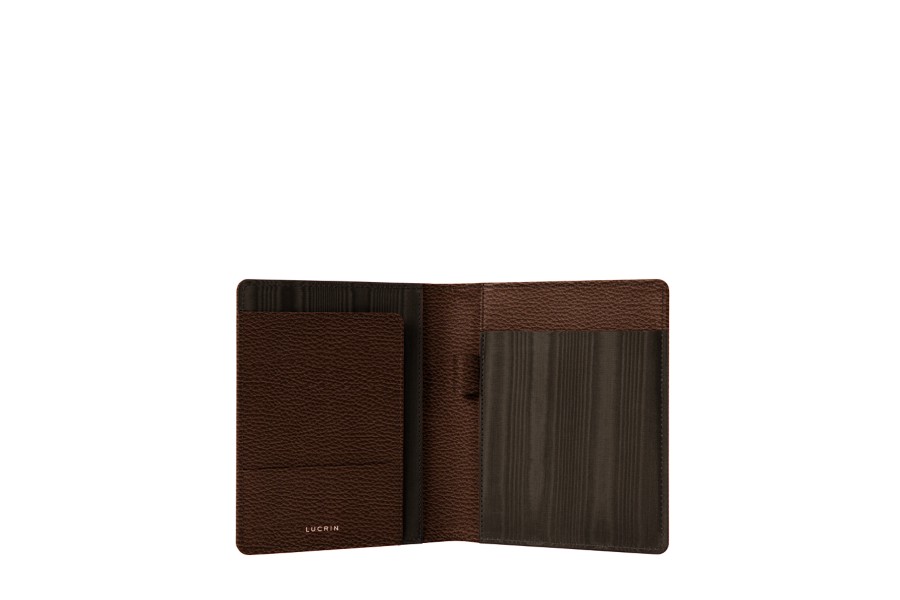 Dit kantooraccessoire is zeer populair onder professionals: de multifunctionele A6-schrijfmap. Deze leren schrijfmap van topkwaliteit is uitgerust met een gebogen plat insteekvak aan de linkerkant - met een vakje voor visitekaartjes - en een A6-notitieblok aan de rechterkant. Aan de rechterkant van de map bevindt zich bovendien een lus om uw favoriete pen in te bewaren. Met deze A6-schrijfmap houdt u alles wat u nodig heeft voor vergaderingen en zakenreizen altijd bij de hand. Opmerking: vervangende A6-notitieblokken zijn beschikbaar op onze website.