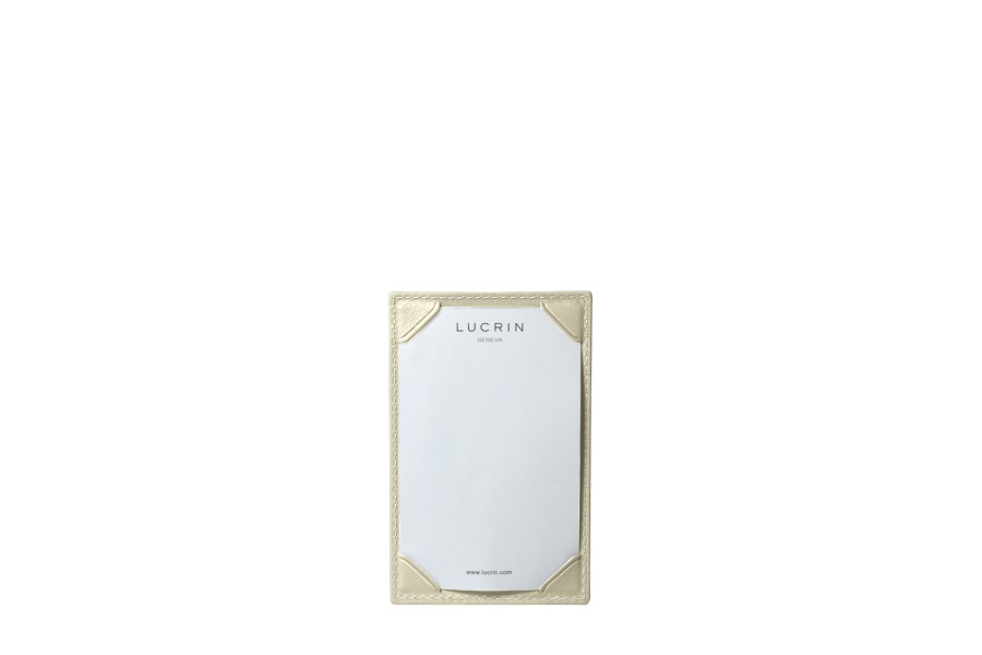 Dit schrijfblok van compact formaat is ideaal voor het noteren van gedachten, notities, of telefoonnummers. Aan de ene kant heeft u het eenvoudige schrijfblok, waarbij de bladen worden vastgehouden door 4 ingeklipte hoeken. Aan de andere kant heeft u een gleuf waarin u wat papiertjes als navulling of een kaartje van standaard creditcardafmetingen kunt bewaren. Natuurlijk worden al onze schrijfblokken geleverd met witte LUCRIN bladen waarvan ook de navulling op deze website beschikbaar is.