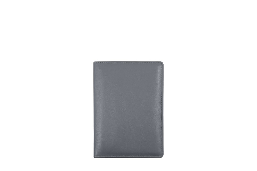 Zakformaat notitieblok van full grain leer. Met aan de linker binnenkant 2 vakjes, één voor visitekaartjes en één groot verticaal vak van paspoortformaat. Aan de rechterkant, het notitieblok en een groot verticaal vak. Geleverd met 10 witte pagina's. Afmetingen geopend: 19,5 x 14 cm. Afmetingen gesloten: 9,5 x 14 cm.