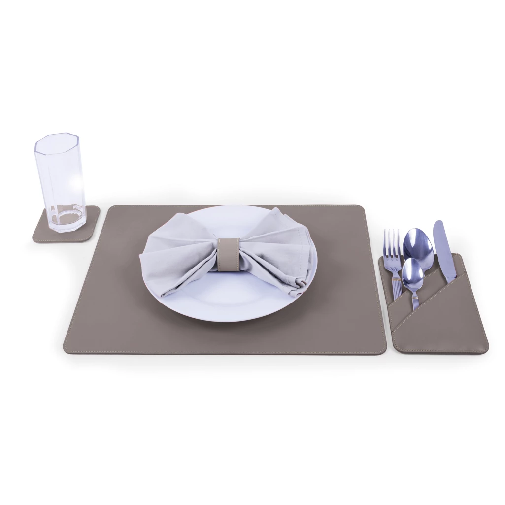 Luxe Set Tafelgerei Licht Taupe  - Soepel Leer