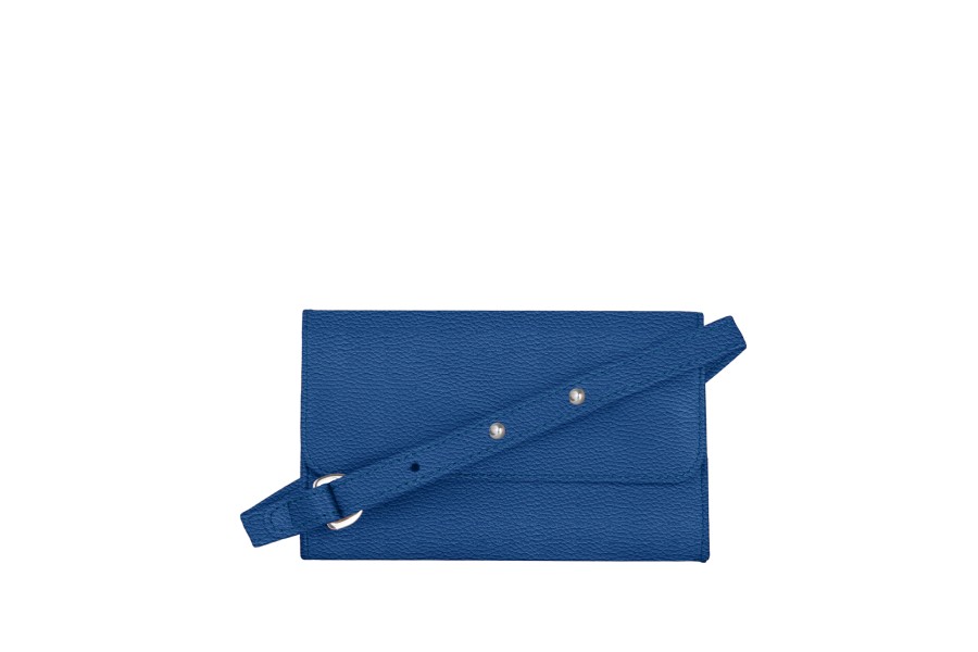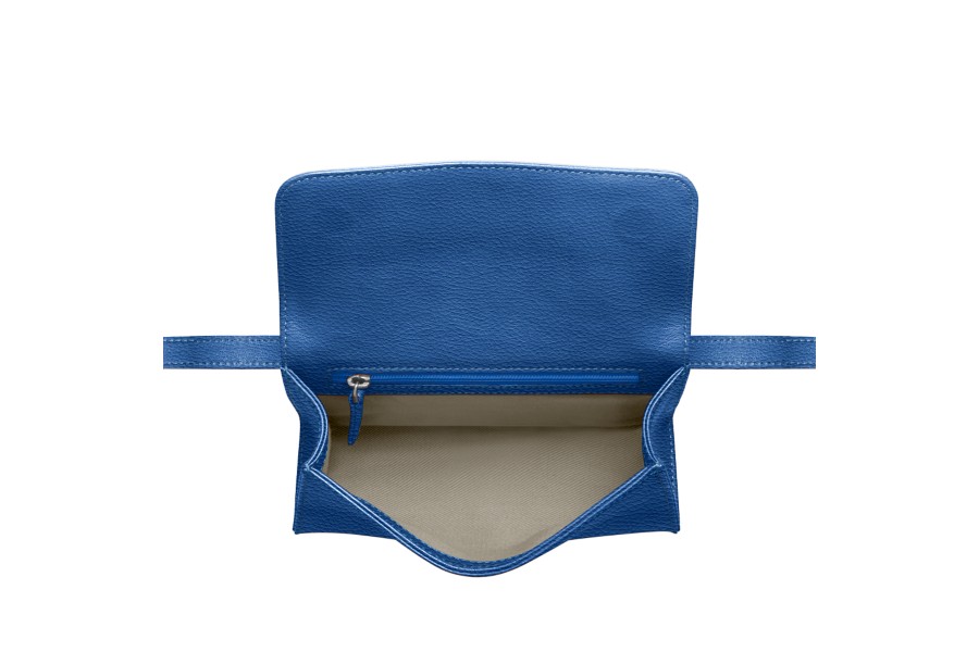 Heuptasje gemaakt van volnerf leer. Binnenin: een platte zak. De heupband is verstelbaar. Omslag met magneetsluiting.