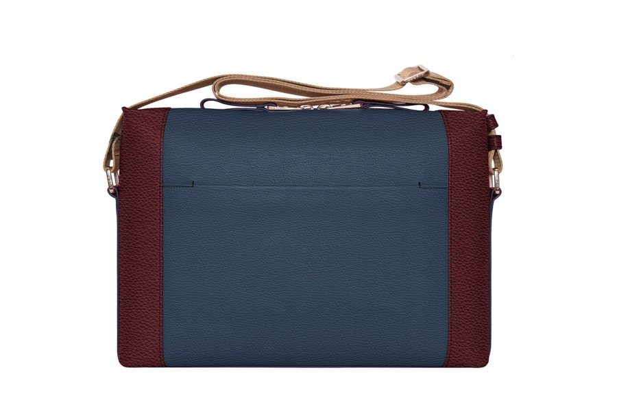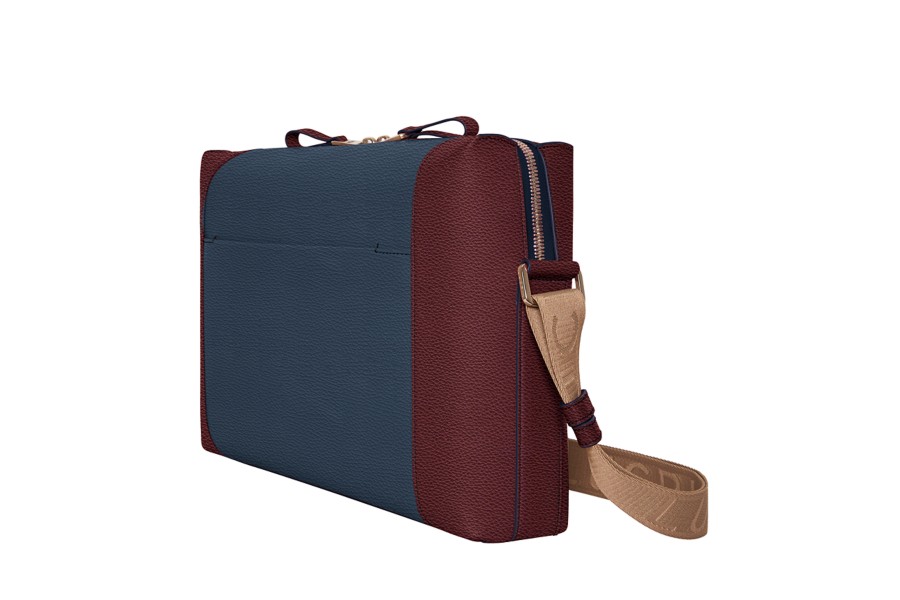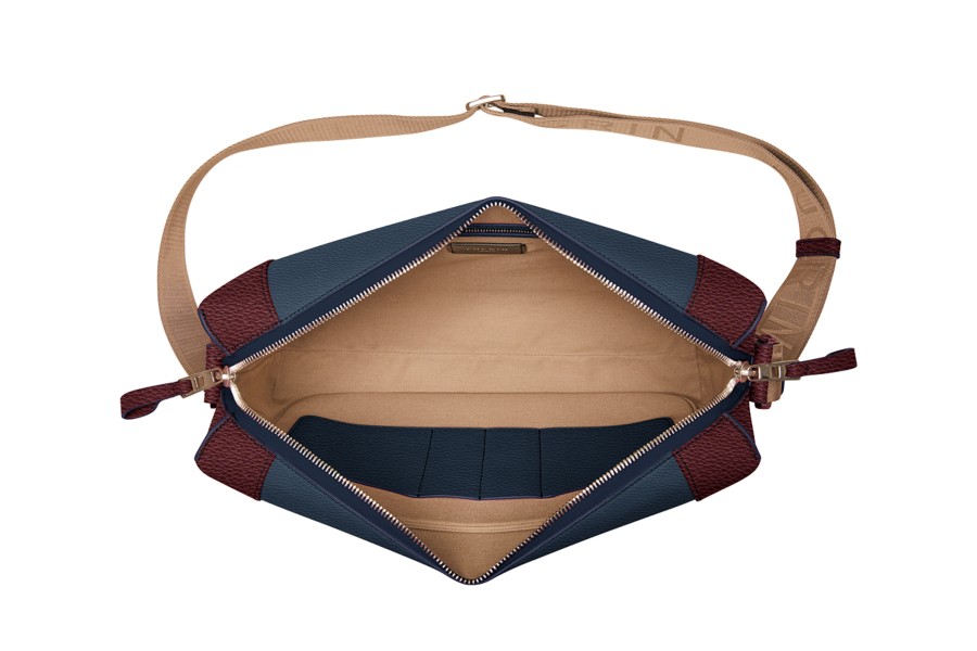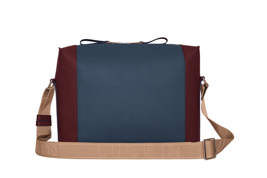 Schoudertas - Marineblauw-Bordeaux - Korrelig Leer