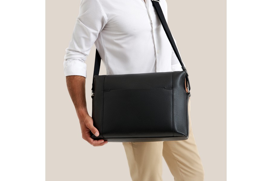 Een smalle en comfortabele schoudertas die perfect is voor uw werkdag. Het klassieke en elegante ontwerp van extra soepel leer past zich aan aan uw dagelijkse behoeften.
